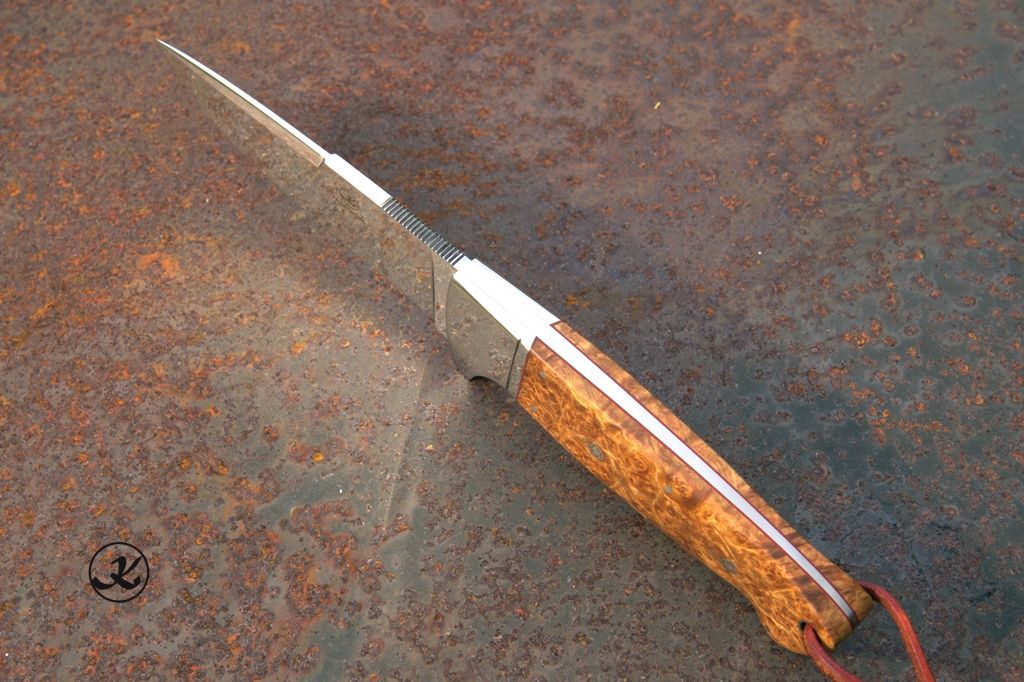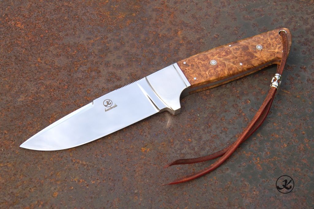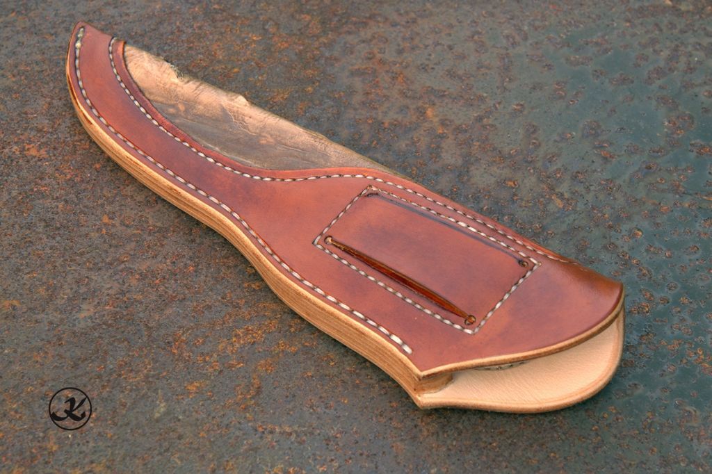Messerscheide: aus bestes Blankleder, gefüttert mit Kalbslederund einer Einlage aus Störleder.
